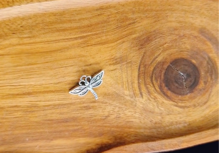 dragonfly charm casting mat with charms laid out on them
